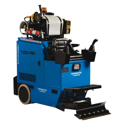 Das Arbeitspferd, wenn es darum geht Böden und Bodenbeläge zu entfernen. Der Propangasantrieb entwickelt eine Leistung, die jeder Anwendung gerecht wird. Der TERMINATOR 2100 Pro besitzt die Fähigkeit hunderte von Quadratmetern Teppich, Vinyl, Keramikfliesen, Holzböden, Elastomere, Epoxidharze, PUBeschichtungen, Parkhausabdichtungen, dekorative Beschichtungen, Dachbeläge, Sportplatzbeläge und vieles mehr an einem Tag zu entfernen.